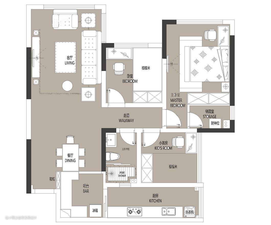 - 两个次卧设计多功能榻榻米节省空间的同时又满足屋主的储物需求。