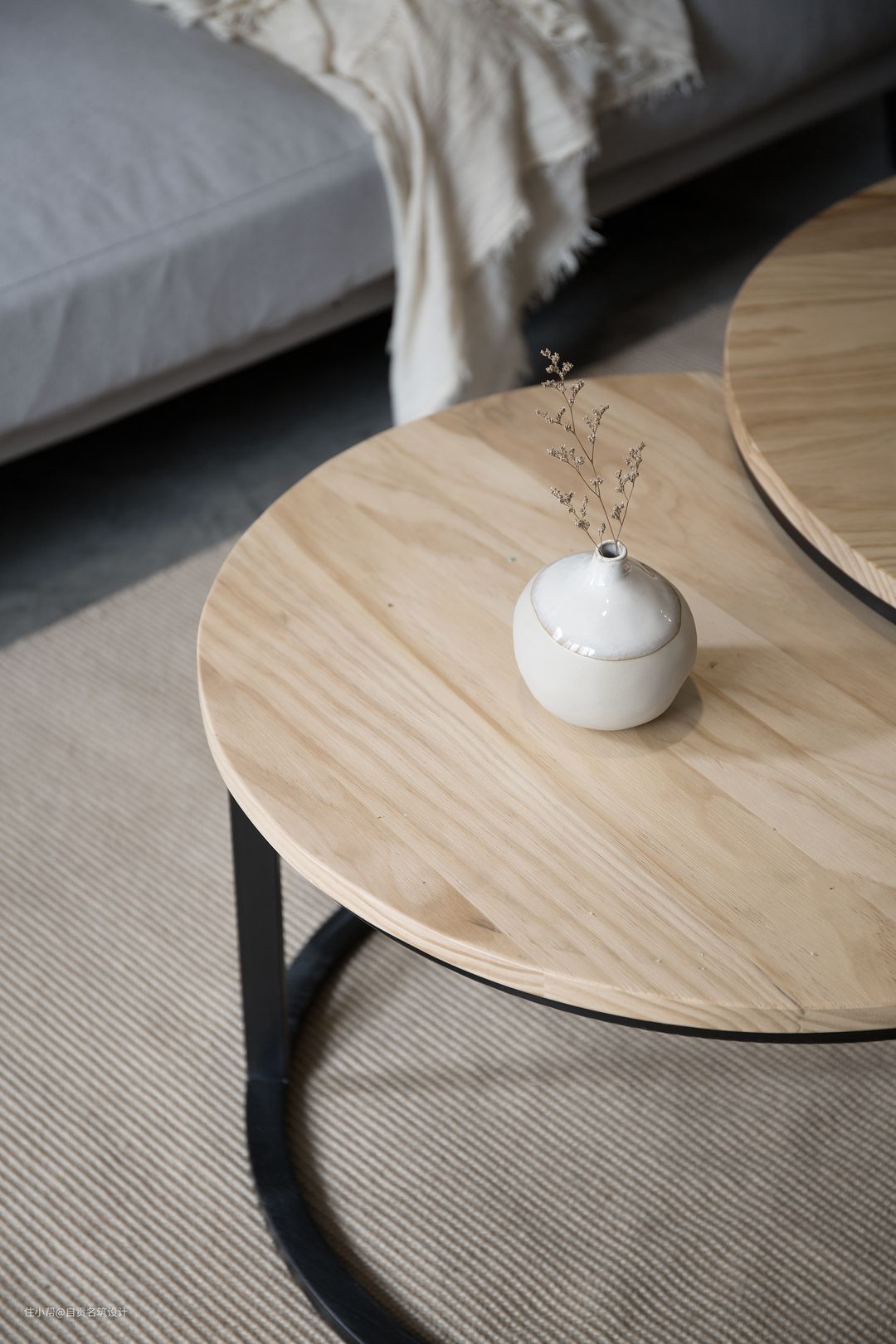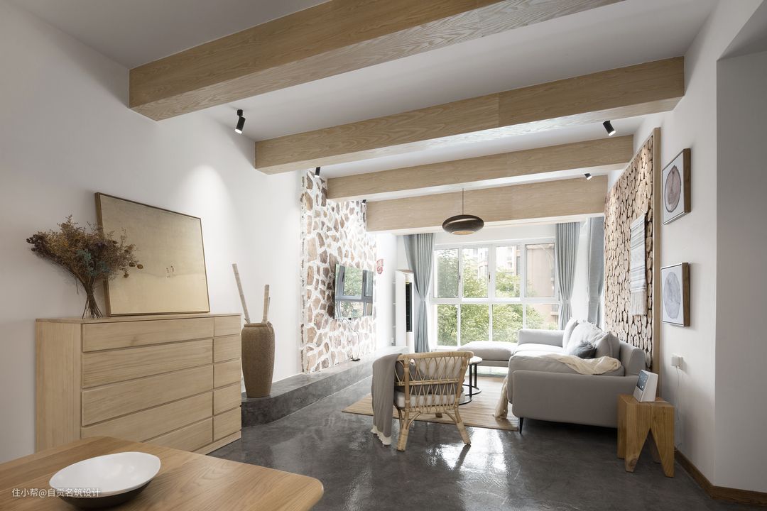 我们通过自然中的石头木头麻布水泥自然中的元素来组合整个空间的设计框架,没有任何的人工色,自然的石色木色水泥和麻布的颜色搭配出了最自然的调性。