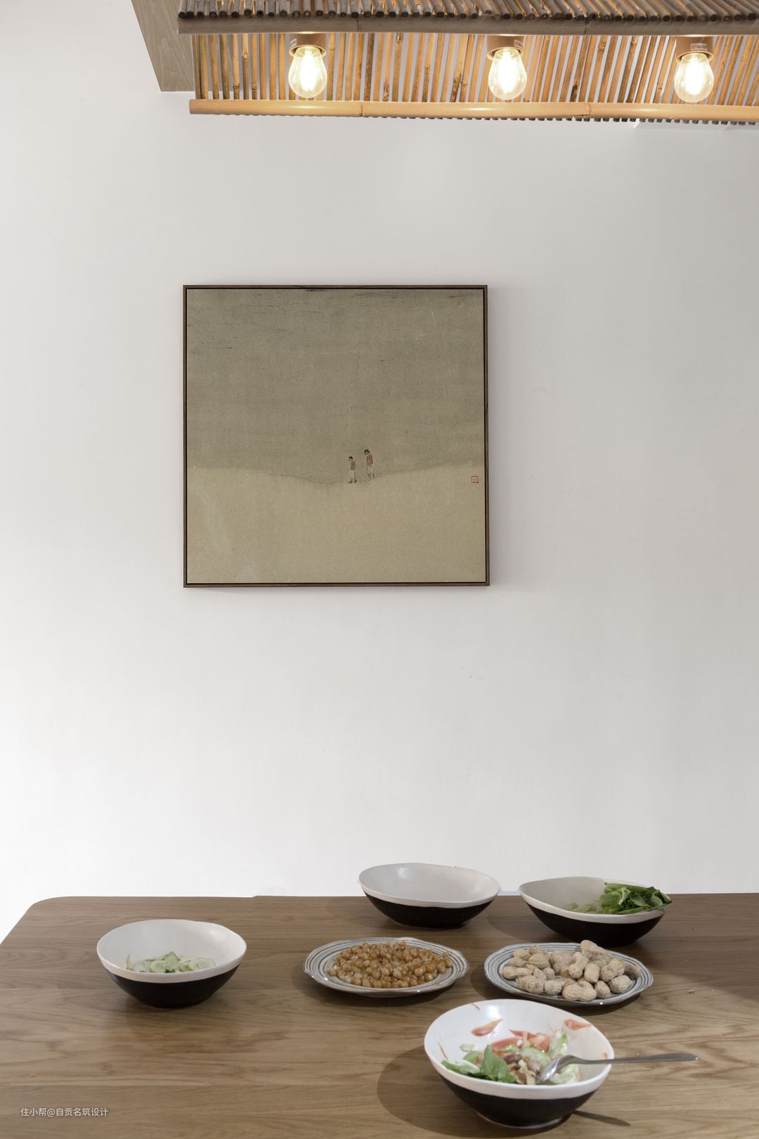 餐厅竹编灯造型温暖别致,在暖暖的灯光下增添了食欲。