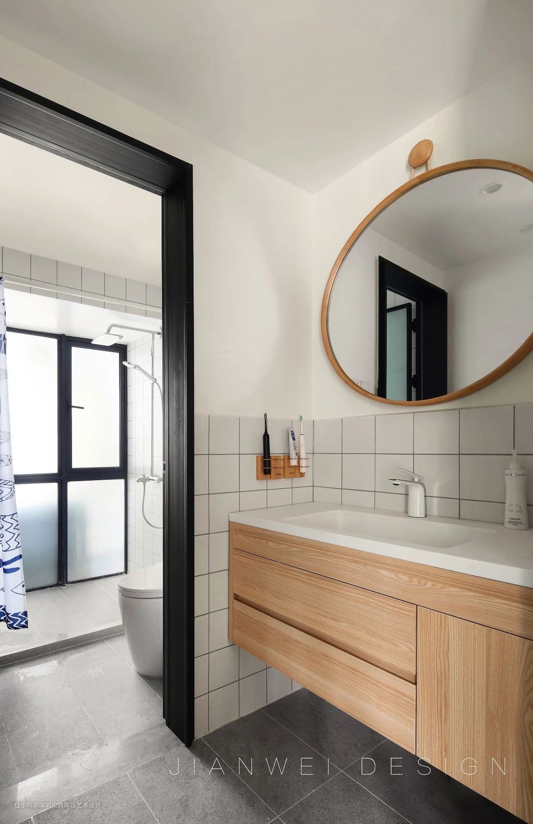 将淋浴区与洗手台功能区域进行划分后,既保持卫浴场地的干燥卫生,又能维持浴室整体环境的整洁美观,实用性翻倍。