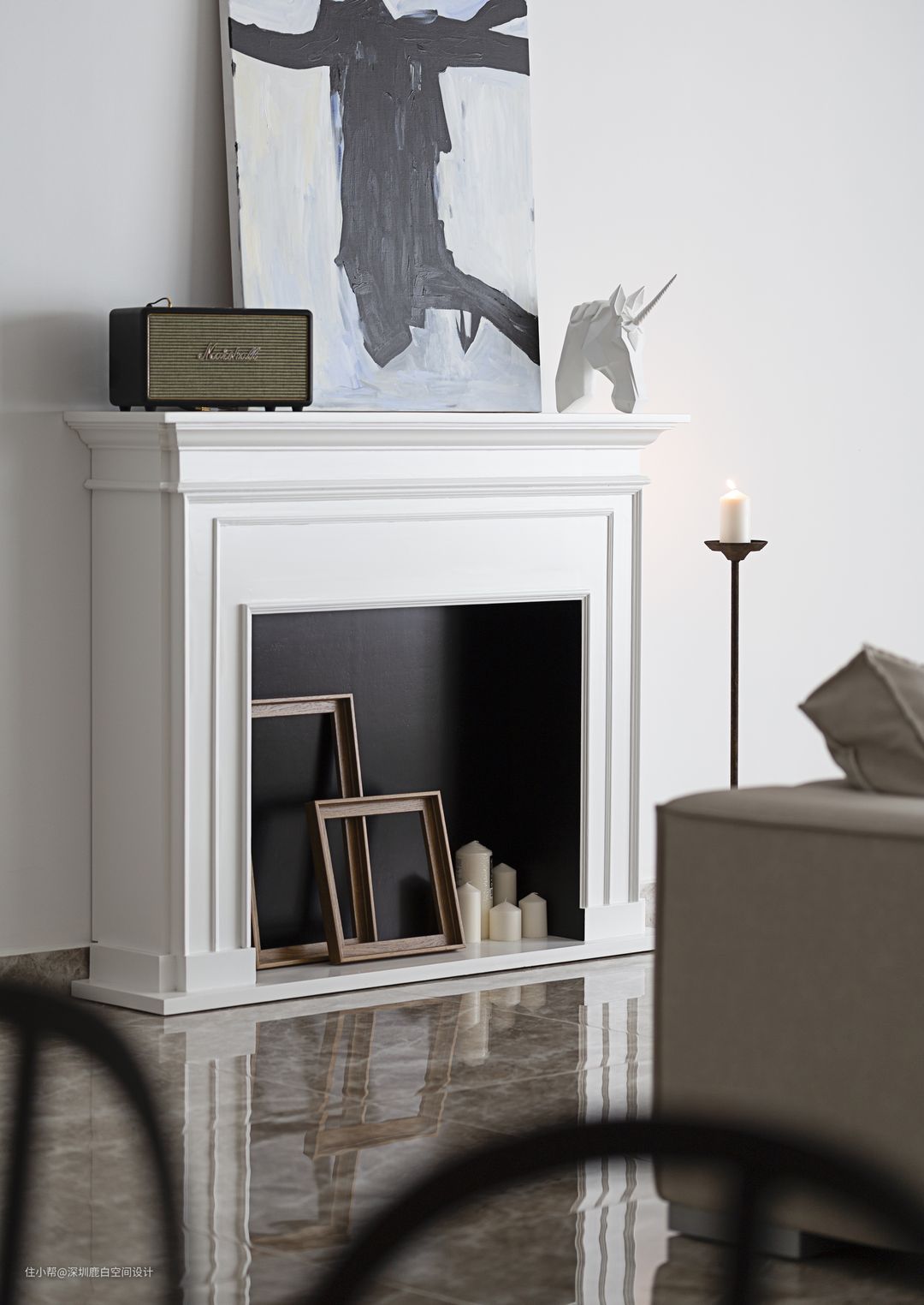 壁炉简洁线条黑色的底面,与装饰画呼应。