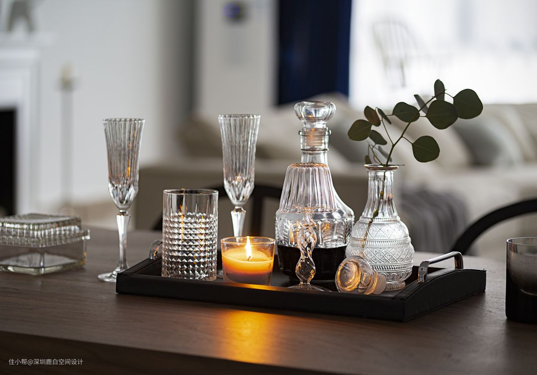 蜡烛光晕,在烦躁的城市里,点燃一只蜡烛使整个空间更宁静,玻璃材质有细节纹理,展示更多欧式古典风,一直高品质的生活方式。一支蜡烛,2杯红酒,细细品。这就是我们营造的空间氛围,精致的生活品质。