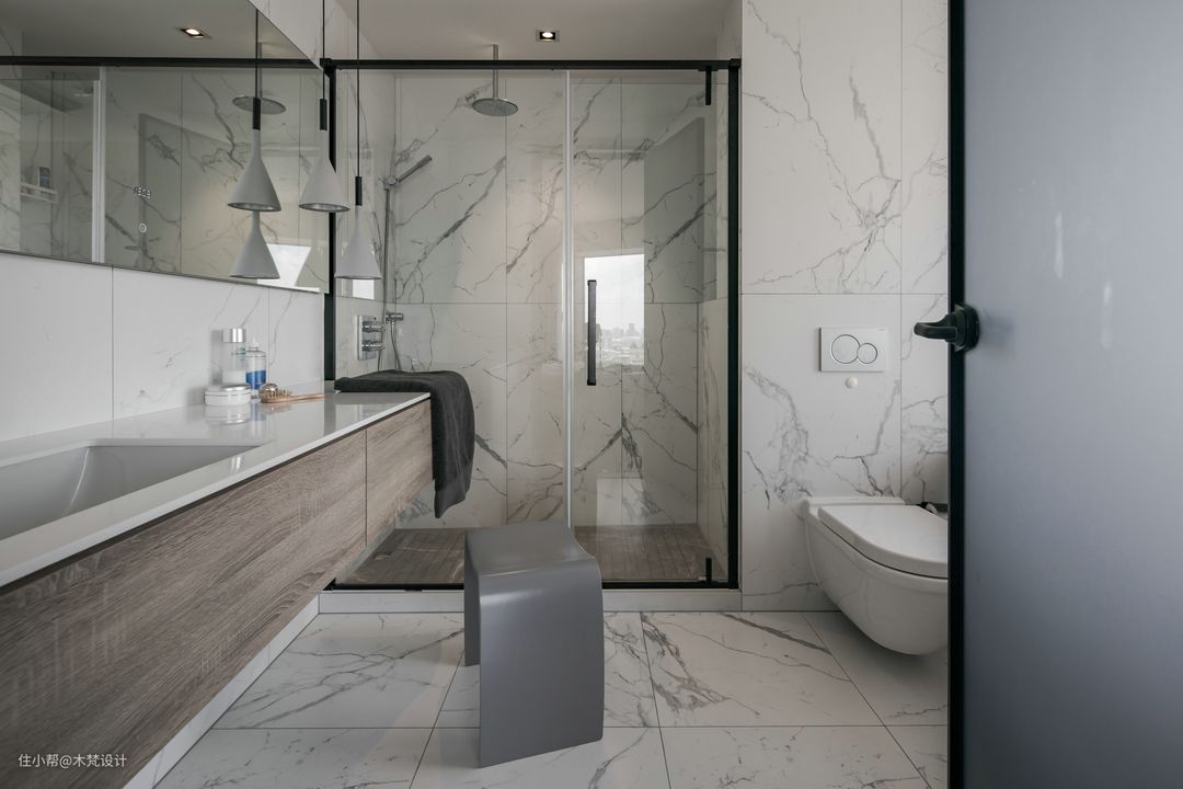 借用部分西厨空间打造了淋浴房,并将女主人喜欢的梳妆台空间挪到了主卫,方便日常使用,也保证了卧室的整洁与极简。