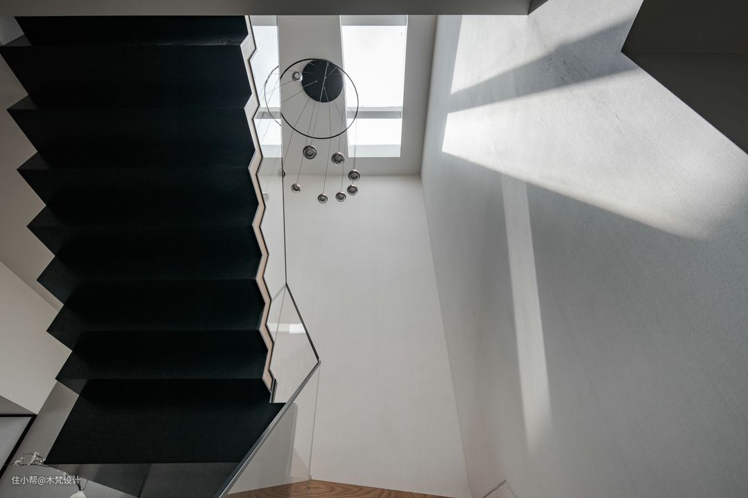 楼梯上方设计天窗,透明玻璃把自然天光引入室内,为轻薄精致的楼梯带来别具一格的美感。