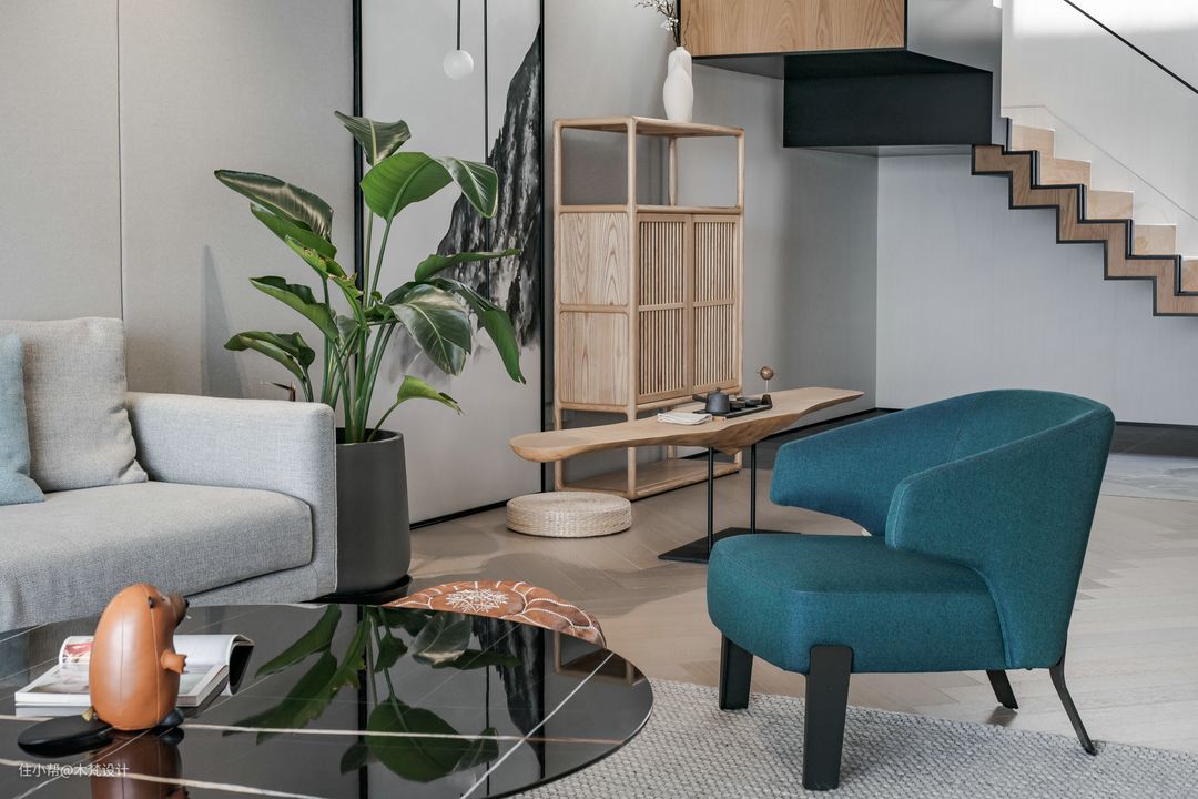 尼加拉蓝的沙发椅,为淡雅的空间增加一抹重彩,丰富了空间的层次感。