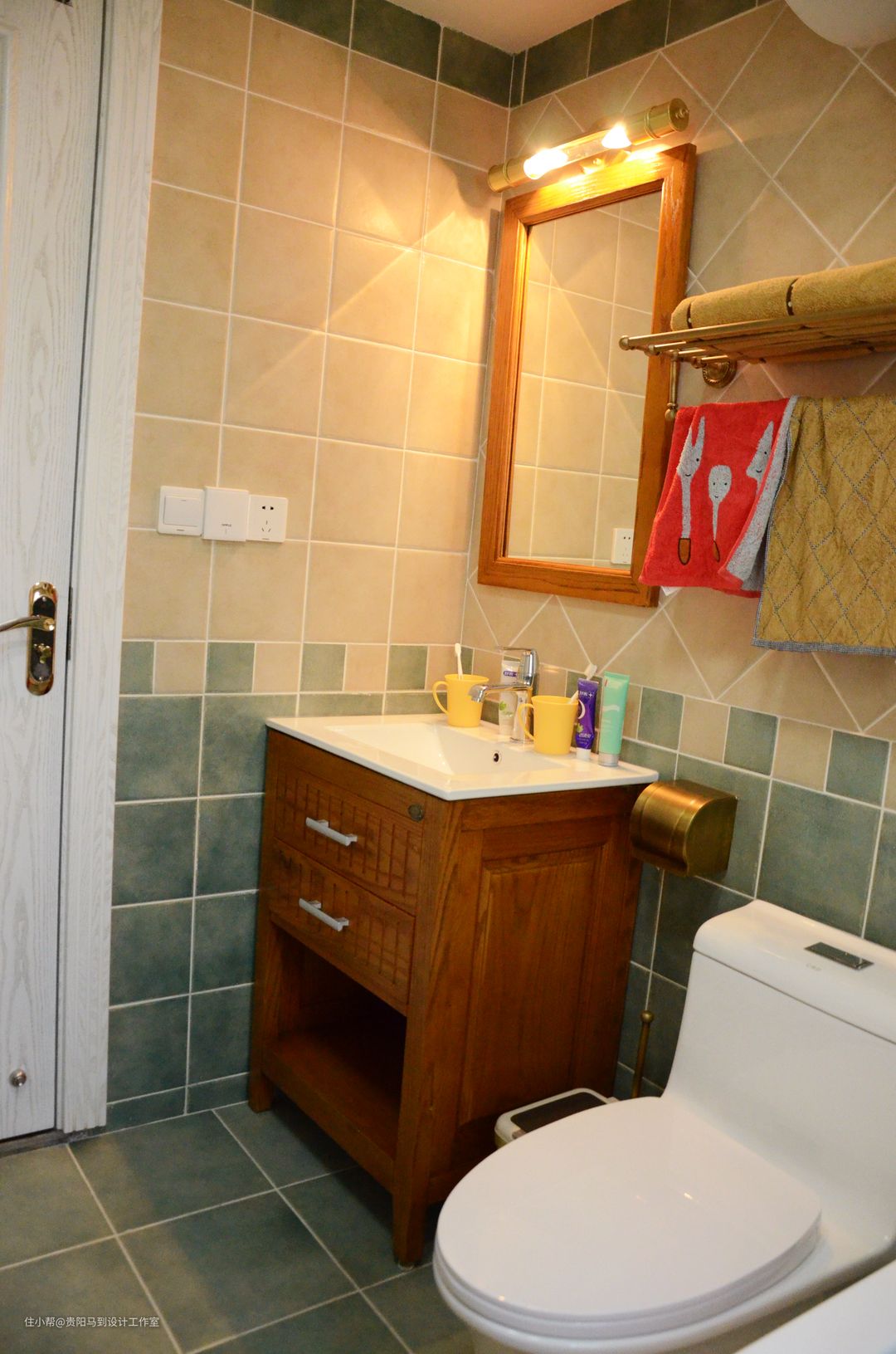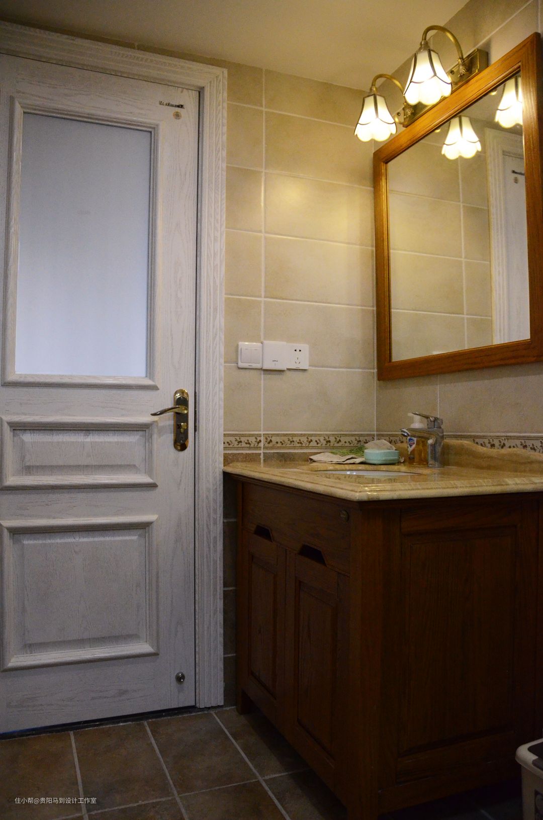 卫浴柜也是实木的,做了调色,配合家具的整体颜色一致。