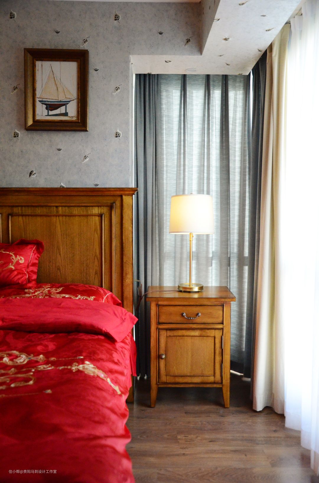 因为是婚房,就拍了主卧这个很有纪念意义的红床单。