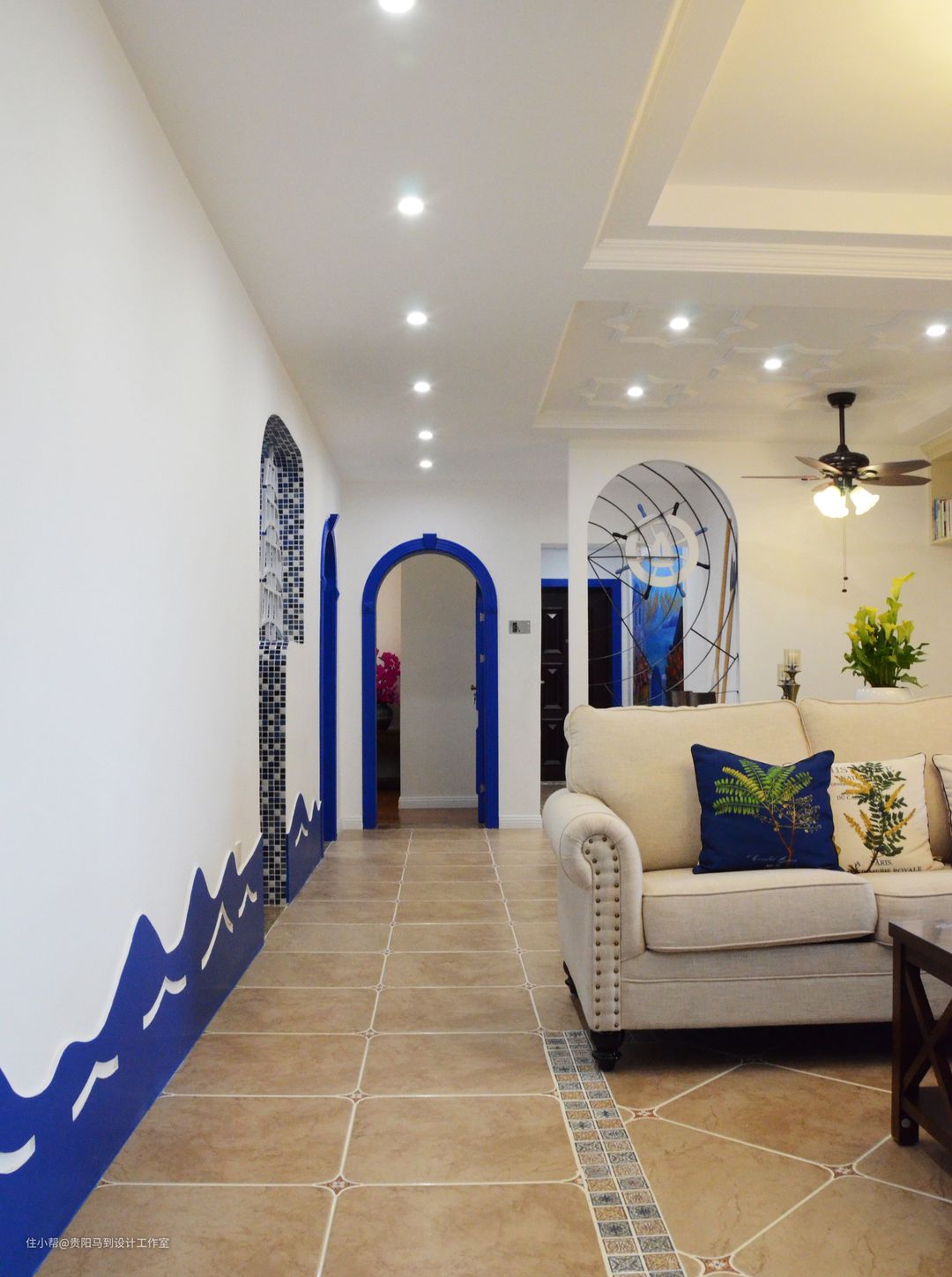为什么标题叫这个,其实刚刚接触到业主的就是一心一意的美式,后来再交谈后越来越偏向于喜欢宝蓝色和白色的搭配,渐渐地发现业主倾向于地中海风格,但又不是完完全全的喜欢地中海风格的所有元素,后来甚至到装饰卖场别人问我们什么风格,我们对望着,居然搭不上话。后来慢慢发现这样子挺好的,因为这就是属于自己的家。