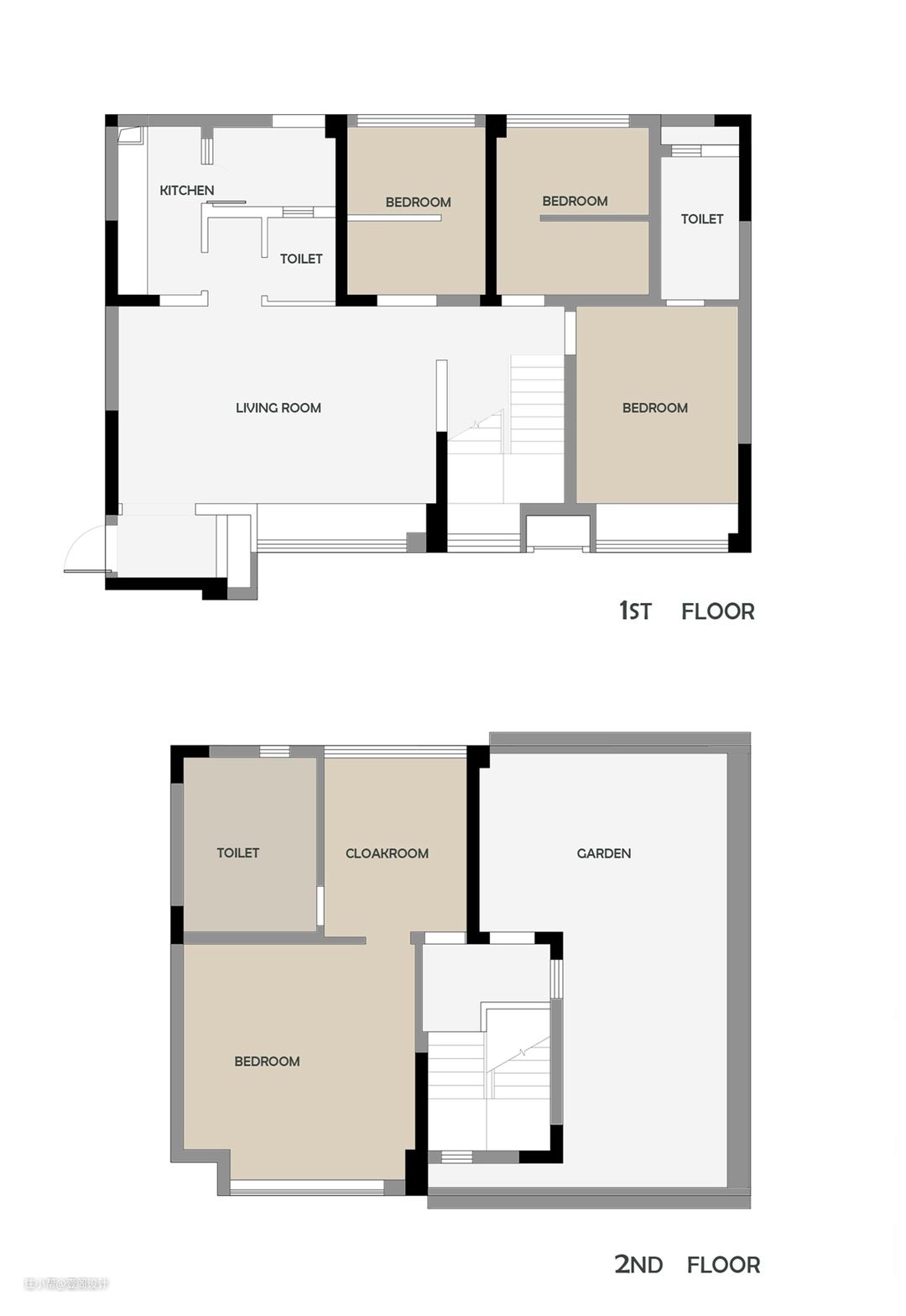 个人简介:本案业主是娜娜,从事人力资源相关工作,这是她和我们的第二次合作。有了第一套房的默契,她更明白自己要的是什么。作为改善型住房,舒适度被放到首位。原始户型结构空间被切分成很多块且面积狭小,很难满足完整功能使用。加上这套房常住人口是一家三口,一间客房以备不时之需即可。对娜娜来说,卧室、书房、阳光房已经能满足她的所有日常生活需求。于是我们将原始户型进行大改,重新布局。除开卧室之外,其余空间都做成了开放式的空间。一家三口不管是在房子里的任何位置抬眼就能看到对方,这对良好家庭关系维系非常重要。其中,二楼采用现浇楼板将主卧旁的露台改建为阳光房,顺着阳光房扶梯而上还有一层空中花园。