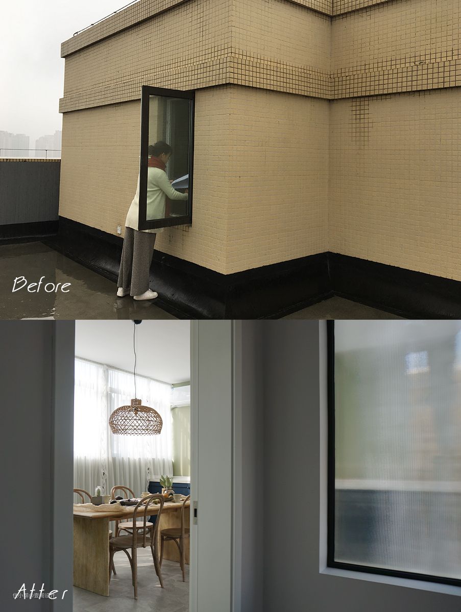 我们将外延露台进行改建,保留原窗位置更换为灯芯纹玻璃,开了一道侧门方便进出。我们选择灯芯纹玻璃是因为比起网红长虹玻璃来说质感更加细腻。#阳光房 #餐桌 #植物 #绿植 #洗衣房
