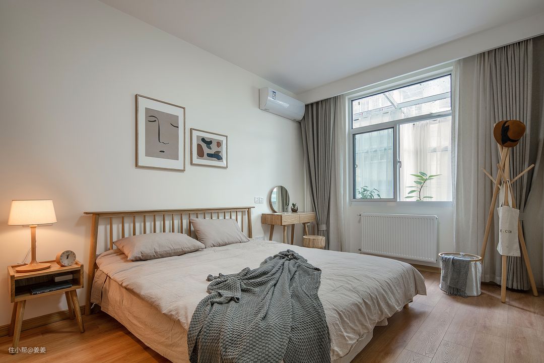 还是和客餐厅一样的基调,原木和白墙,大家一定是发现了我的搭毯和客厅一样吧,其实是拍摄的时候拿过来摆拍的,这一点就要和大家说了一定要控制好预算啊!我家预算控制的还可以,但是也超了一点~不过还在是锅碗瓢盆都配置齐全了。