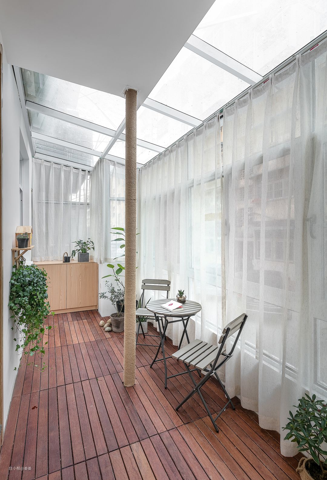 这个阳台的改造,真的是满足了我所有的想法,看书,小坐,会友,发呆,浇花,还有我最喜欢的清风徐来的纱帘,还有最重要的收纳~改造之前望着一堆杂物和野草我是绝对想不到这效果的~