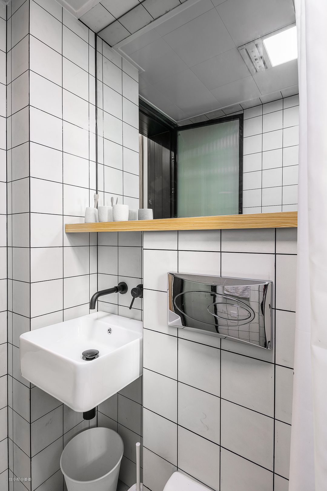 从原来老房的无处安放的卫浴洁具到安排的妥妥当当的面盆,壁挂马桶,以及淋浴区的过程中都是设计师从墙体抠出来的尺寸,我就怕掏墙楼会塌,拒绝过设计师的这个想法,后来用了钢架加固的情况下,设计师借用了墙体的尺寸来补给卫生间,现在看来设计师的坚持是对的,小小的一个壁龛,日常沐浴用品都能放置的下。