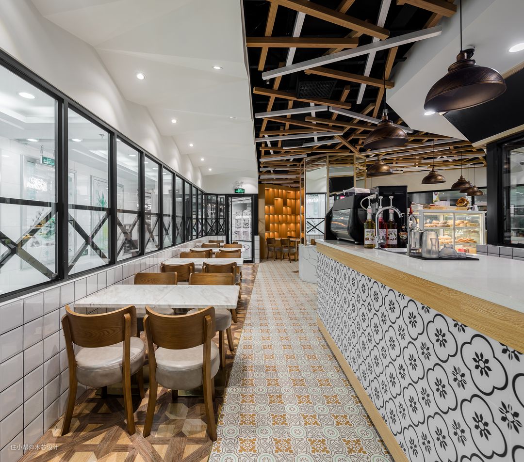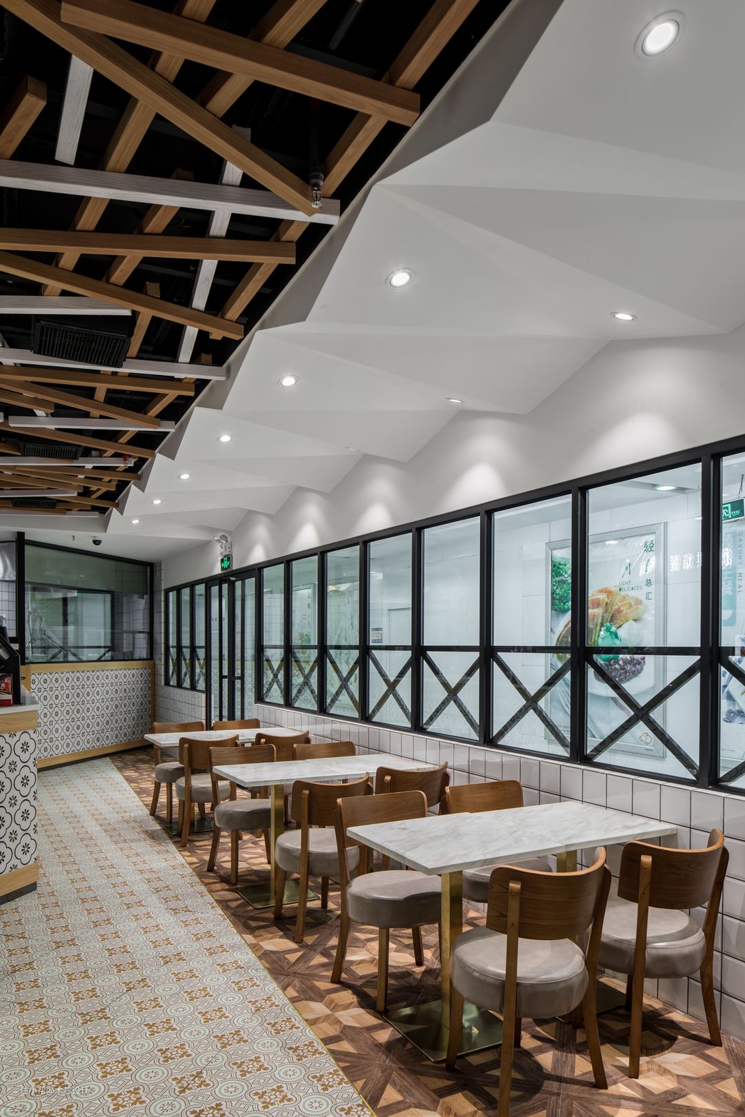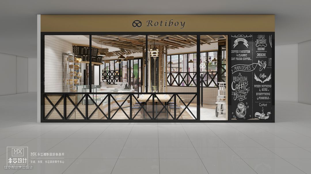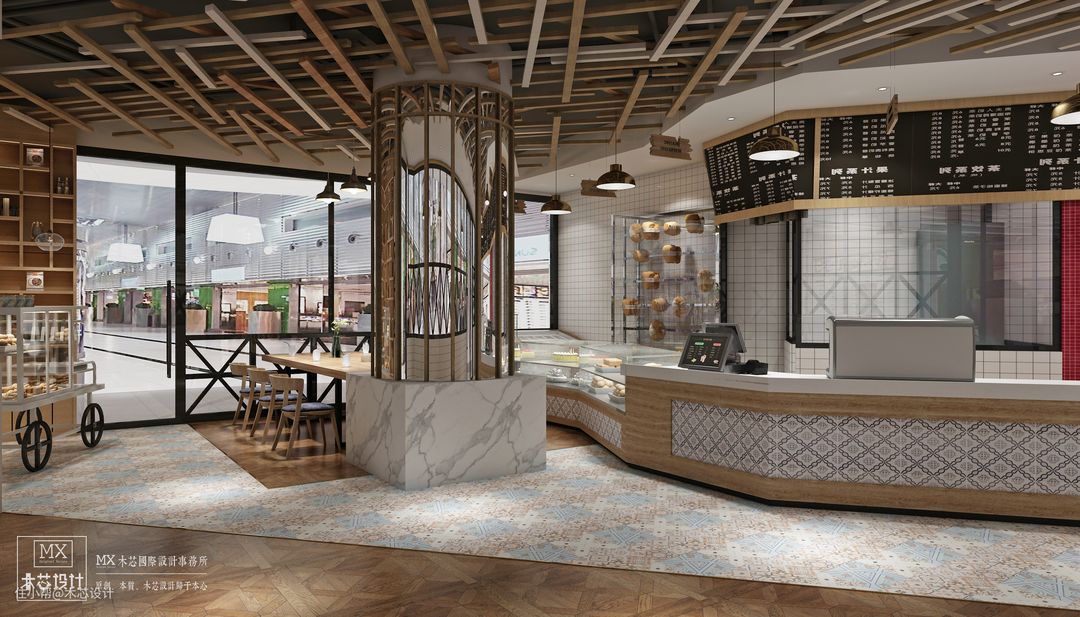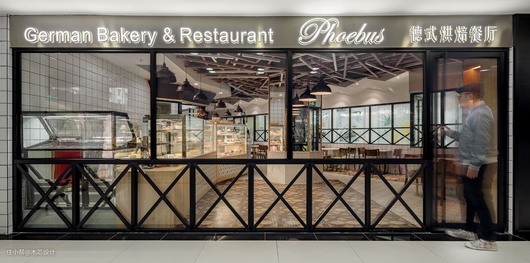 “什么是设计? 设计是为构建有意义的秩序而付出的有意识的直觉上的努力。 设计,是指设计师有目标有计划地进行技术性的创作活动。 设计的任务不只是为了生活和商业服务,同时有伴有艺术性的创作。” |作品档案 项目地址:广东·广州·中华广场 项目用途:商铺 设计风格:现代风格 设计单位:木芯国际设计事务所 主创设计:Johnny |设计背景 在与两位业主初次见面时,深感他们对西点有种特别的情怀,“每家分店无论口味卖相或是店面形象我们都会努力做到最好”。这已不是业主的首家品牌店。在空间设计,他们期望这次能打破传统的面包店形象,能让顾客感受到不一样的异域气息。为了配合品牌的发展宗旨,Germen Bakery面包店需要拥有视觉冲击力的特征,能在众多周边的商铺和竞争对手中脱颖而出。因此关于面包店的门面设计,业主坚持要达到内心想要的标准。找到木芯设计前,曾找过其他设计公司,但设计效果理念并没达到自己的要求。他们爱天马行空、有想法的设计。设计师Johnny总是喜欢挑战与打破陈规。基于彼此的信任感,从确认主调,到每一砖一瓦,所有细节都有其存在的意义。