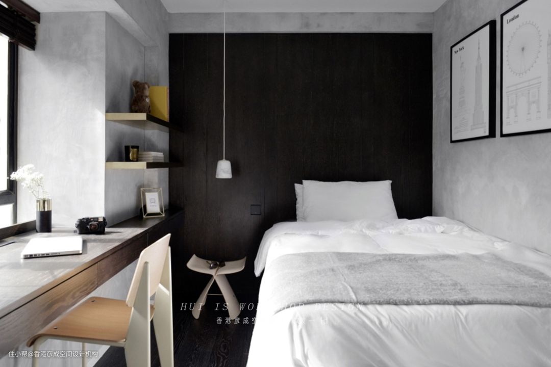 卧室空间一进门放眼便是这明朗、充满高级感的灰色墙面,瞬间给人一种高雅的气质,灰色+咖色高级又有格调。明亮的窗户引入自然光源,更加通透。#卧室 #