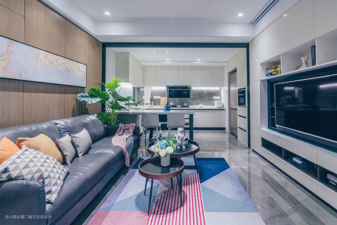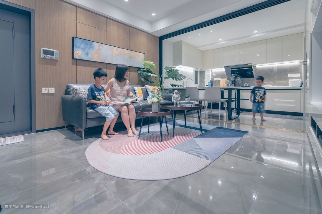 2、设置LDK布局(客厅、餐厅、厨房同处一个空间),扩大空间视觉面积,也更利于家人之间的互动。