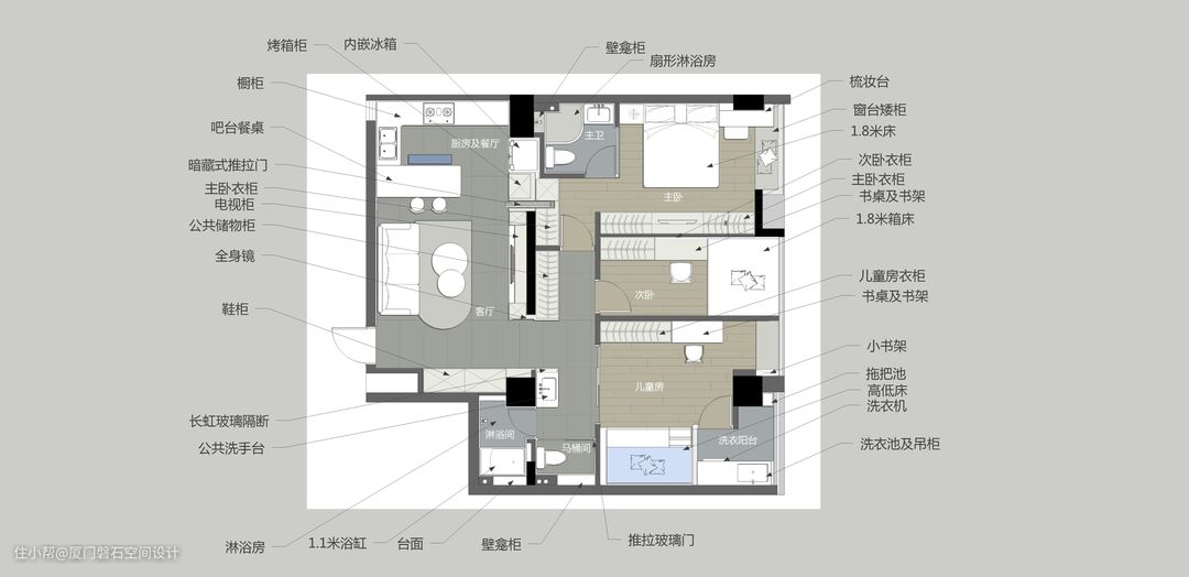 6、各空间在保证美观和宽敞过道的情况下,尽可能增加储物空间。
