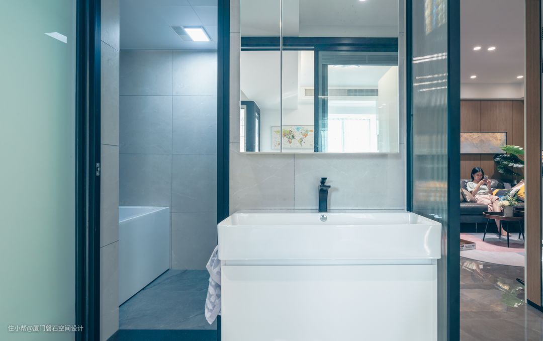 客卫借助走廊空间,将客卫台盆外移,设置独立马桶间,变身三分离卫浴。