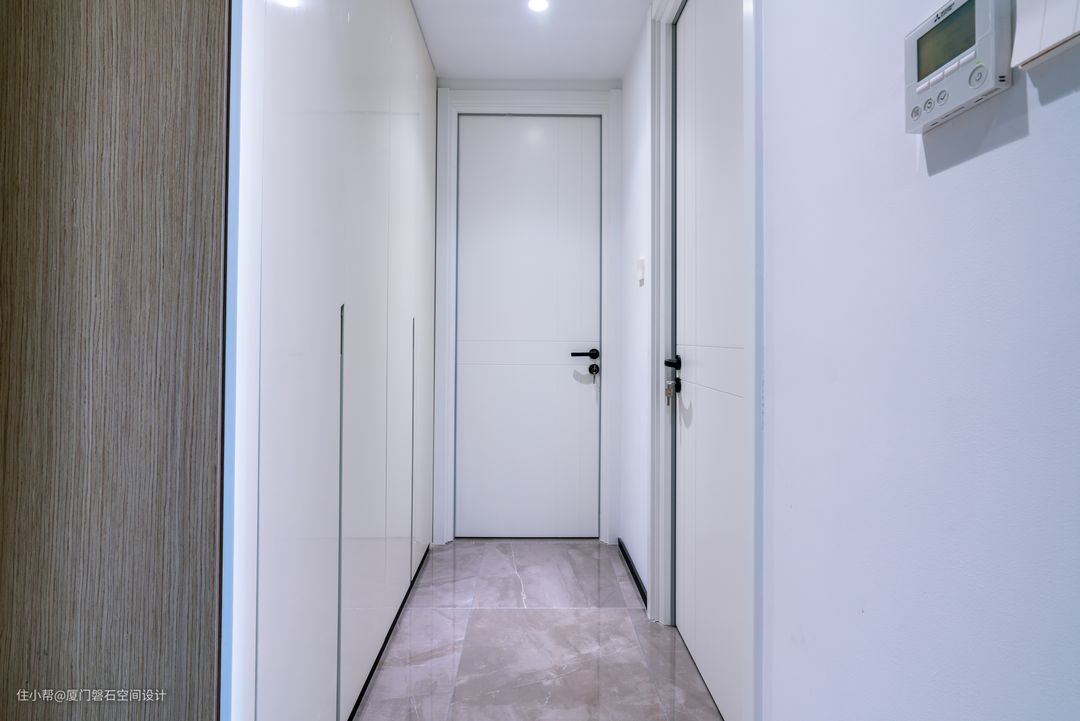 柜体深度550mm;而走廊的宽度仍然留有890mm,走廊本身不长,加上3个房间的采光非常棒,人在此行走,感觉还是相当舒适的。