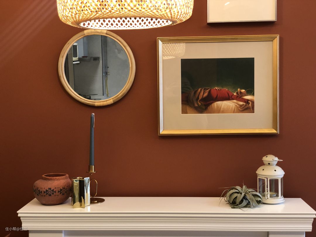 壁炉上的挂画其中一幅也是屋主姐姐收藏的,镜子也是选了好几家不是没货就是需要等待,最后换了这款藤编质感的,美美哒~