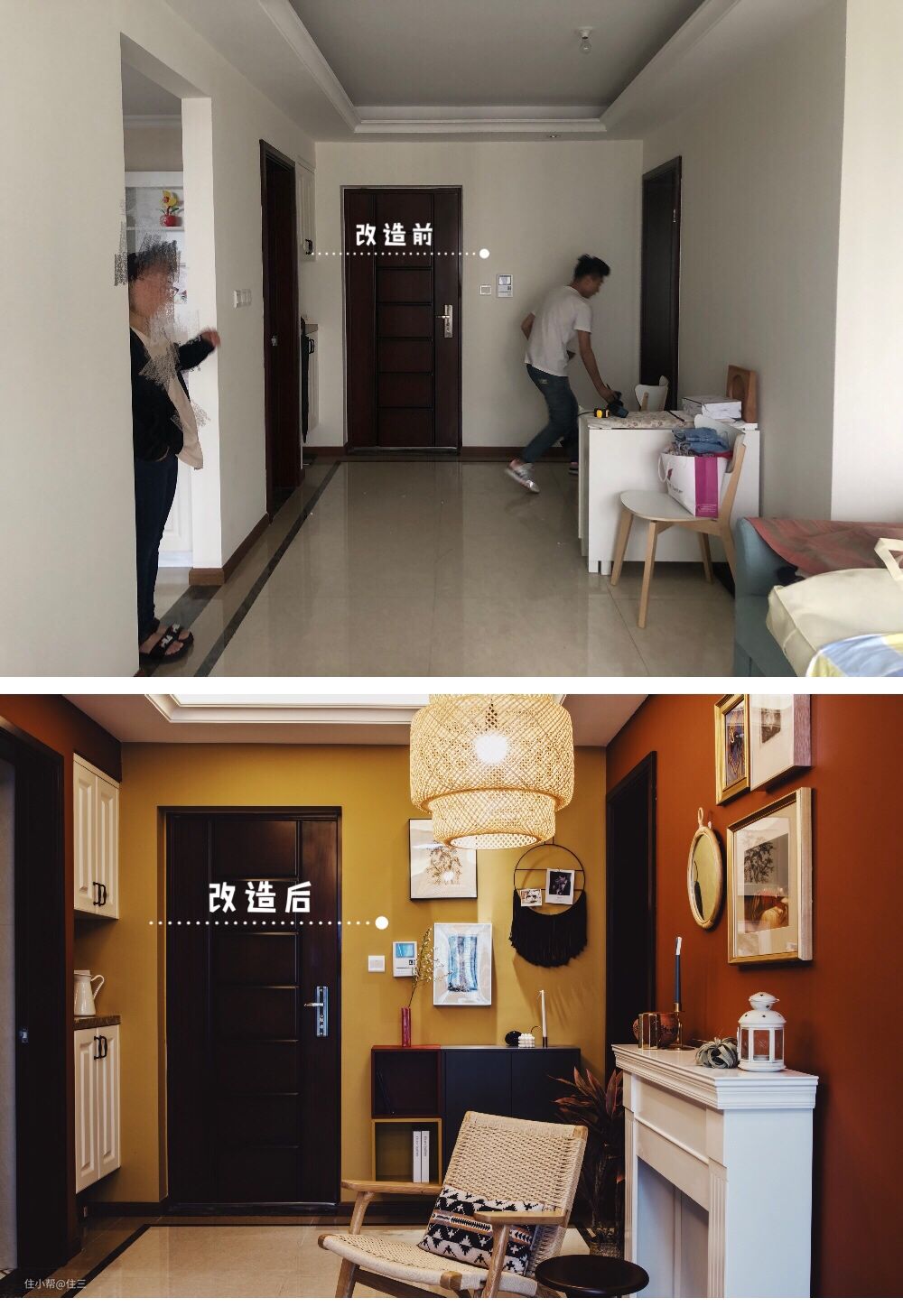 来还是先来看看改造前和改造后的区别,其实干区都是精装房的标配,我们随便跟客厅一样整体涂刷了砖红色~