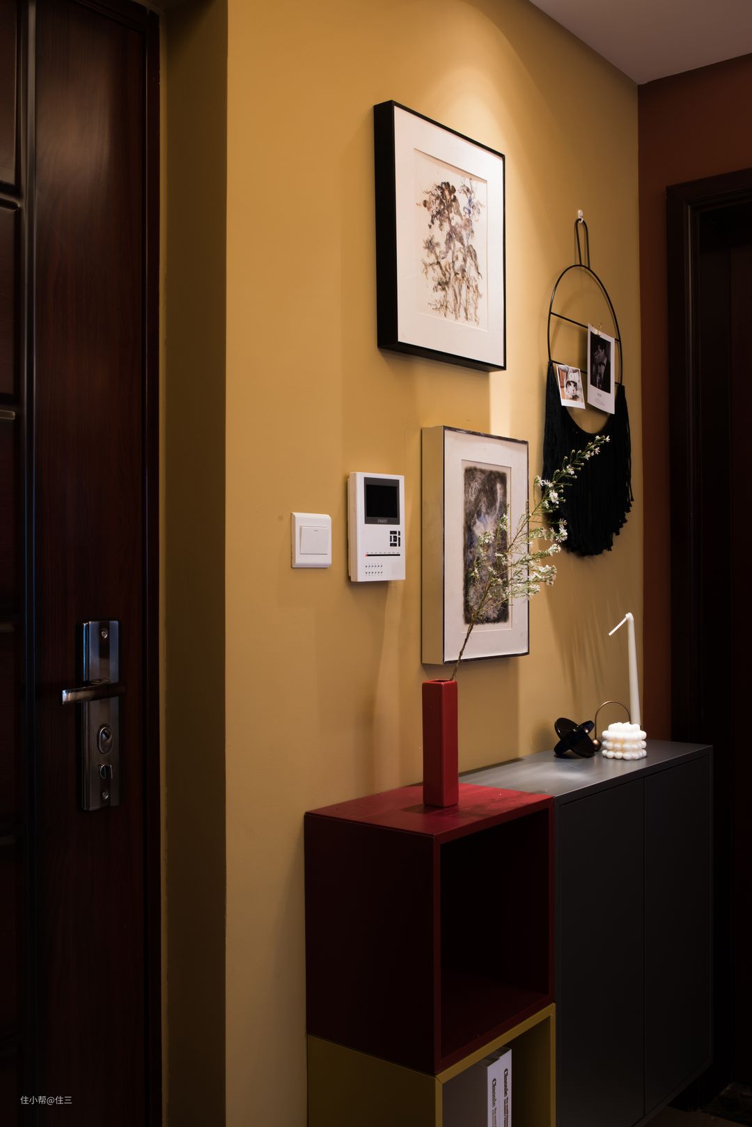 门厅墙面的挂画是屋主姐姐的收藏,原本这幅画我是计划横挂,抽象的理解,我觉得横竖都可以,但是姐姐说要坚挂,后来调整了还是很看,据说是画面是一朵花~~
