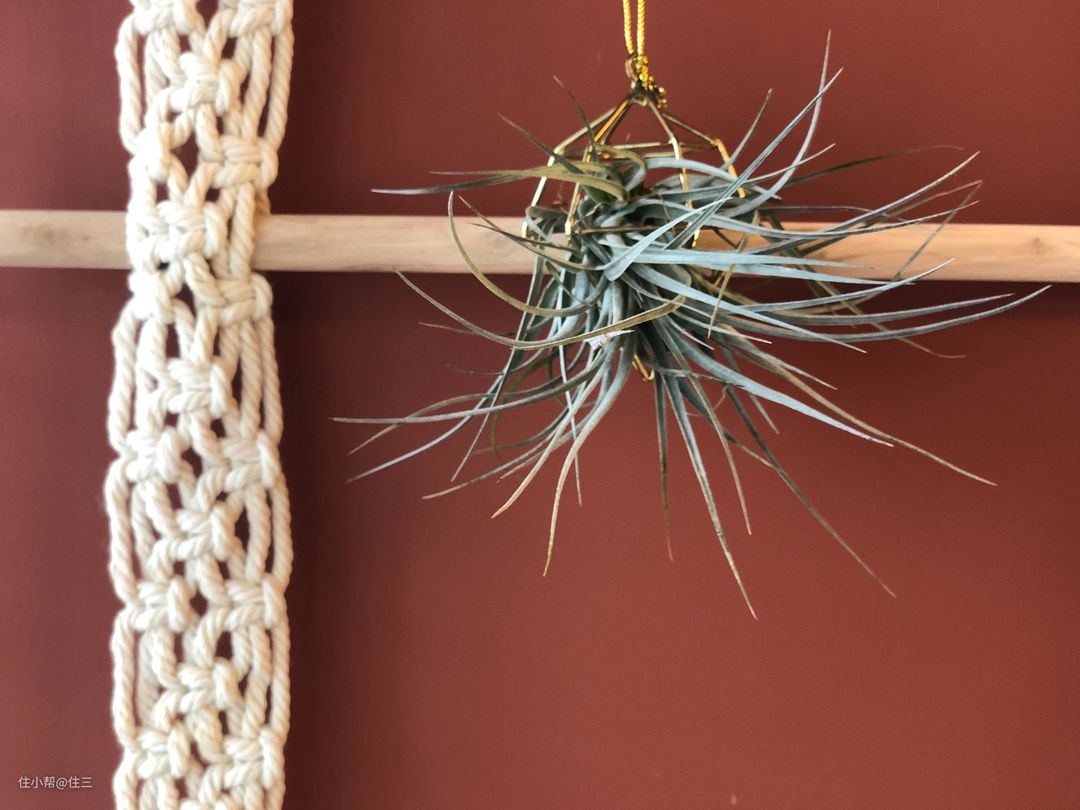 床头柜床头做了业主姐姐喜欢的沙幔,用了3根木头和麻绳固定