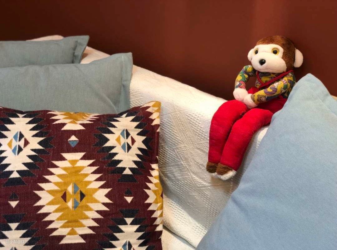 沙发上的小猴子是陪伴屋主姐姐一路成长的玩偶,是全屋的亮点中的亮点必要要拍一张,真的很乖~~