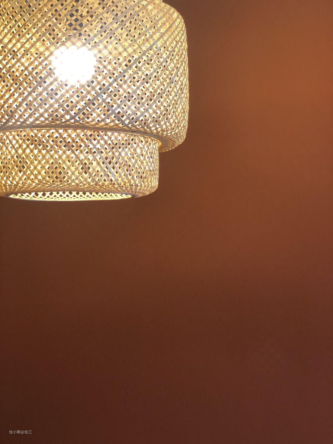 屋主姐姐原本在宜家还有一个吸顶灯没有安装,原本卧室就用那个了,不过因为已经买太久了,师傅找不到配件无法安装,临时换了这款藤编的灯,光影特别好看~