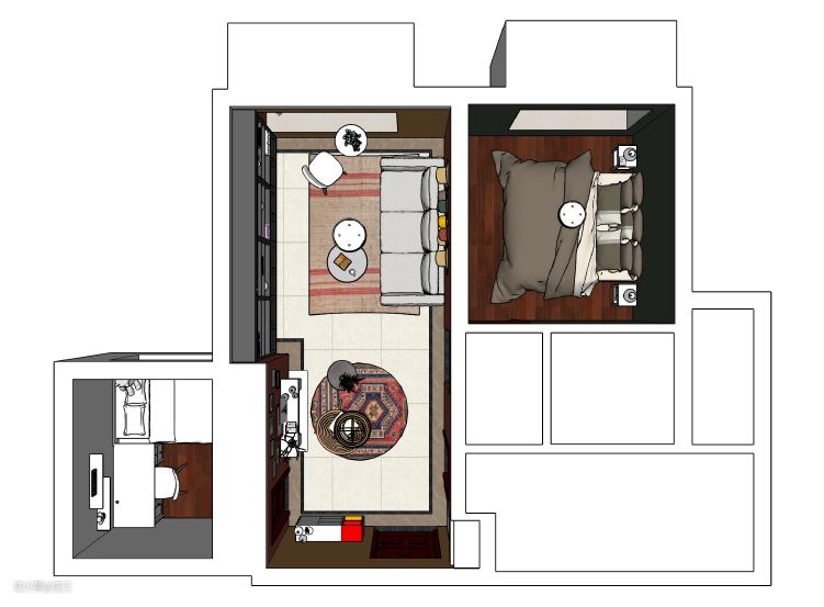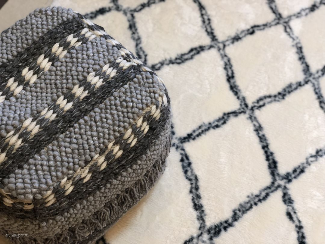 我们把餐桌摆到了飘窗区,客厅我们就没有再设置小茶几,一张大块毯,一个墩子,简单舒适~