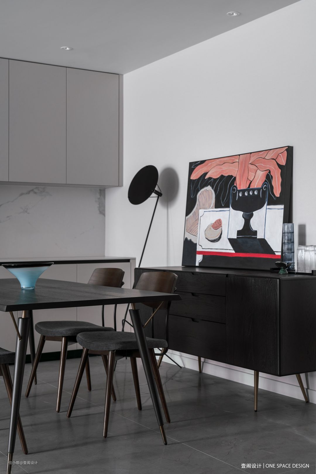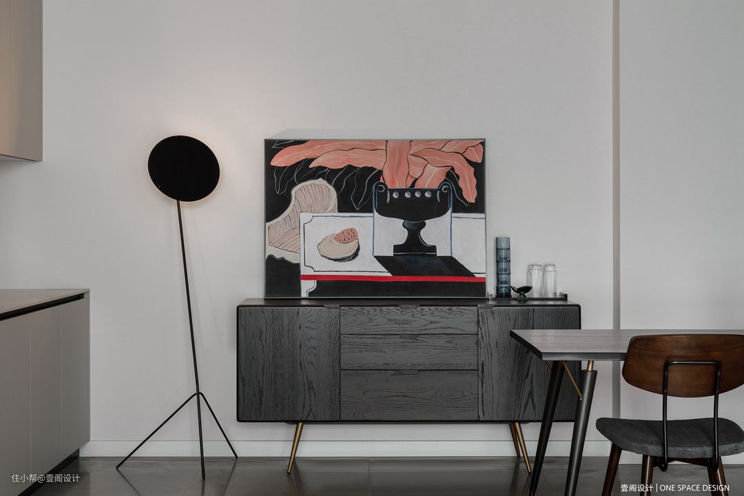 偏橙色系的抽象画作为空间点缀,增添空间活泼感。#餐厅 #餐边柜
