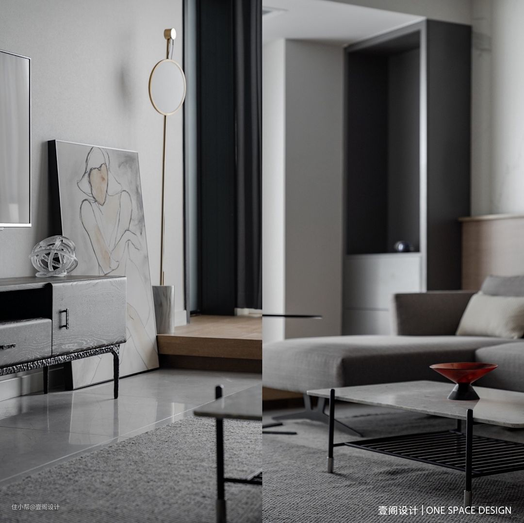 家具单品选择浅色系石材纹理与沙发背景墙呼应,给人一种酒店式的高级与精致,又不失温馨舒适。#茶几 #边几