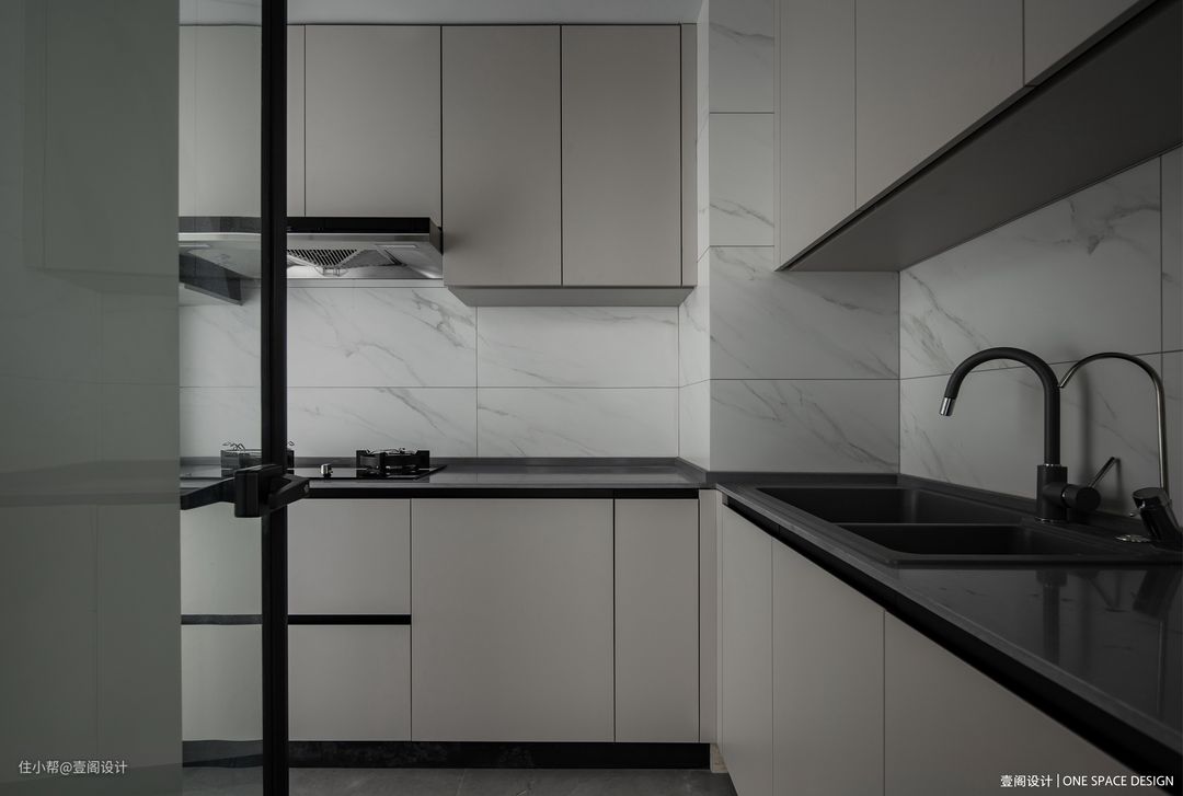 极窄边框玻璃门将中厨与客厅进行分割,在视觉上更具穿透感。#厨房