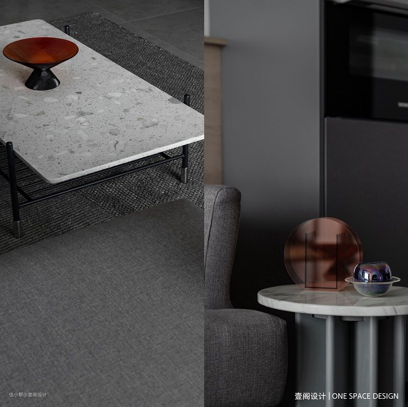 家具单品选择浅色系石材纹理与沙发背景墙呼应,给人一种酒店式的高级与精致,又不失温馨舒适。#茶几 #边几