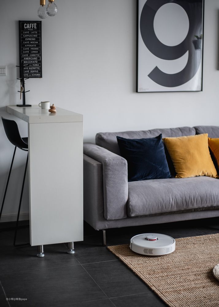 今天就给大家说说在入住后中如何一点一点的改造我的家的。小家户型让人不满意,砸了墙也同时砌了新墙,同时装修期间单纯的 认为北欧风就是黑白灰,就一直照着这个色调去购置软装。最终家里的颜色大致比例为45%白色+30%黑色+10%灰色+5%绿色+10%其他颜色绿色,黑色等深色占了一大半。一开始觉得挺酷,后期审美疲劳,觉得黑色真的拍照不是很上镜,给人冷清感。为了解决深色带来的视觉压迫感,重新购置了家具,断舍离掉一些不好看颜色过深的家具,从色调上来重新布置。