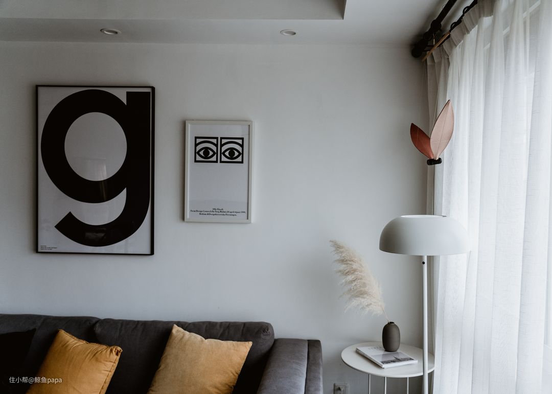 下面是我家的客厅区域,之前的电视柜是木色的,加上黑色的黑板墙,还有灰色窗帘等等再杂七杂八的颜色,给人的感觉就是不高级。现在在统一色调大法之下,去重新布置客厅,感觉好看多了。