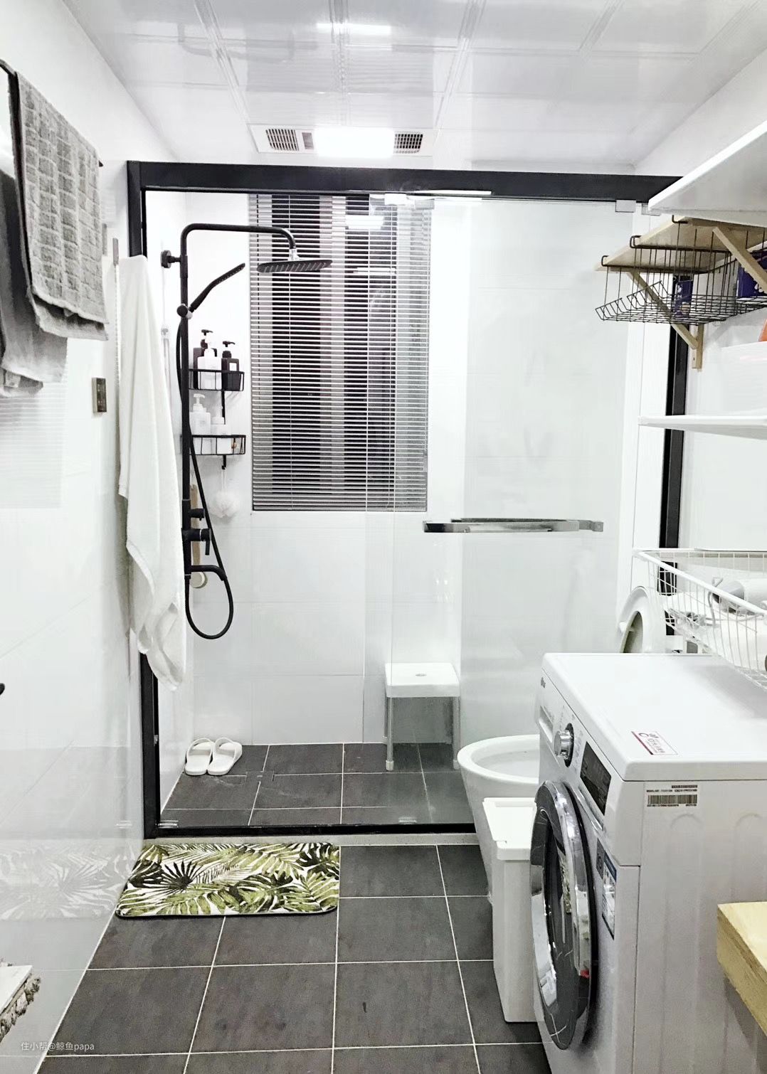 我家卫生间也是挺小的,不过容量还挺大,淋浴、厕所、洗衣都在这里面解决了。因为前期改造的原因,所以我家卫生间没有做到干湿分离,每个空间都相对规整,没有什么多余的边边角角。没做干湿分离最大的弊端就是每次洗个澡,其他区域都会被附上水汽。因为我每次洗完澡都会开窗通风,经常打理卫生间,即使湿度高但是也没见到哪个东西发霉。下方附图是2017年拍摄,卫生间局部区域已有改动,因为拍不好这个区域,所以图非常有限。
