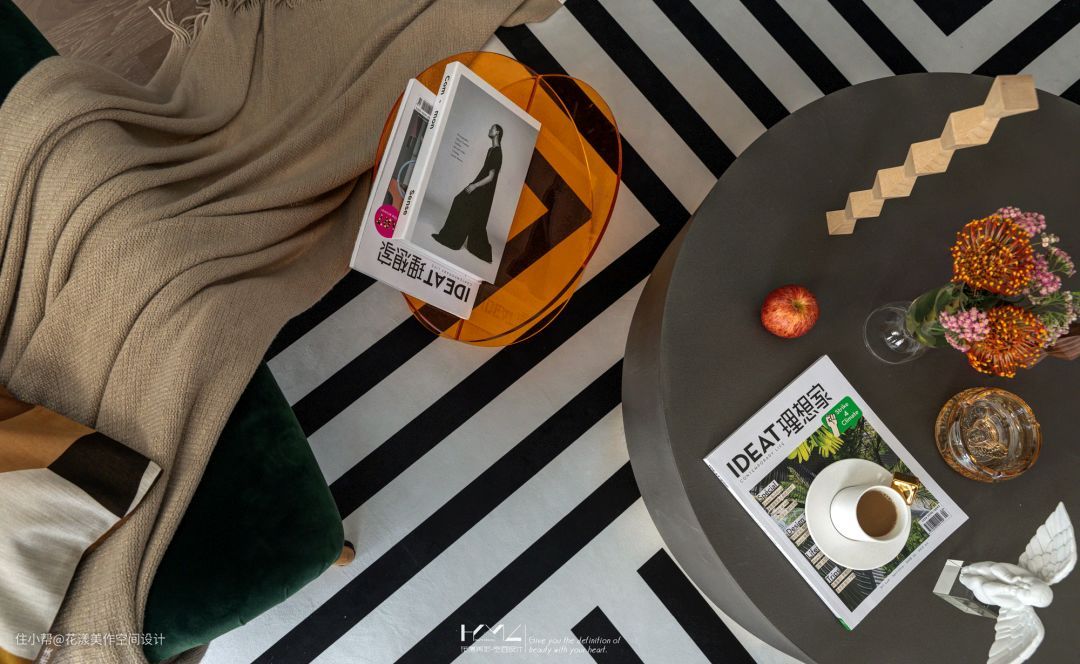 敦厚现代的圆形茶几,下圈勾勒了一个金属踢脚边框,搭配了金色高脚小边几,现代感的家具时尚又不失格调,与整体空间完美匹配。