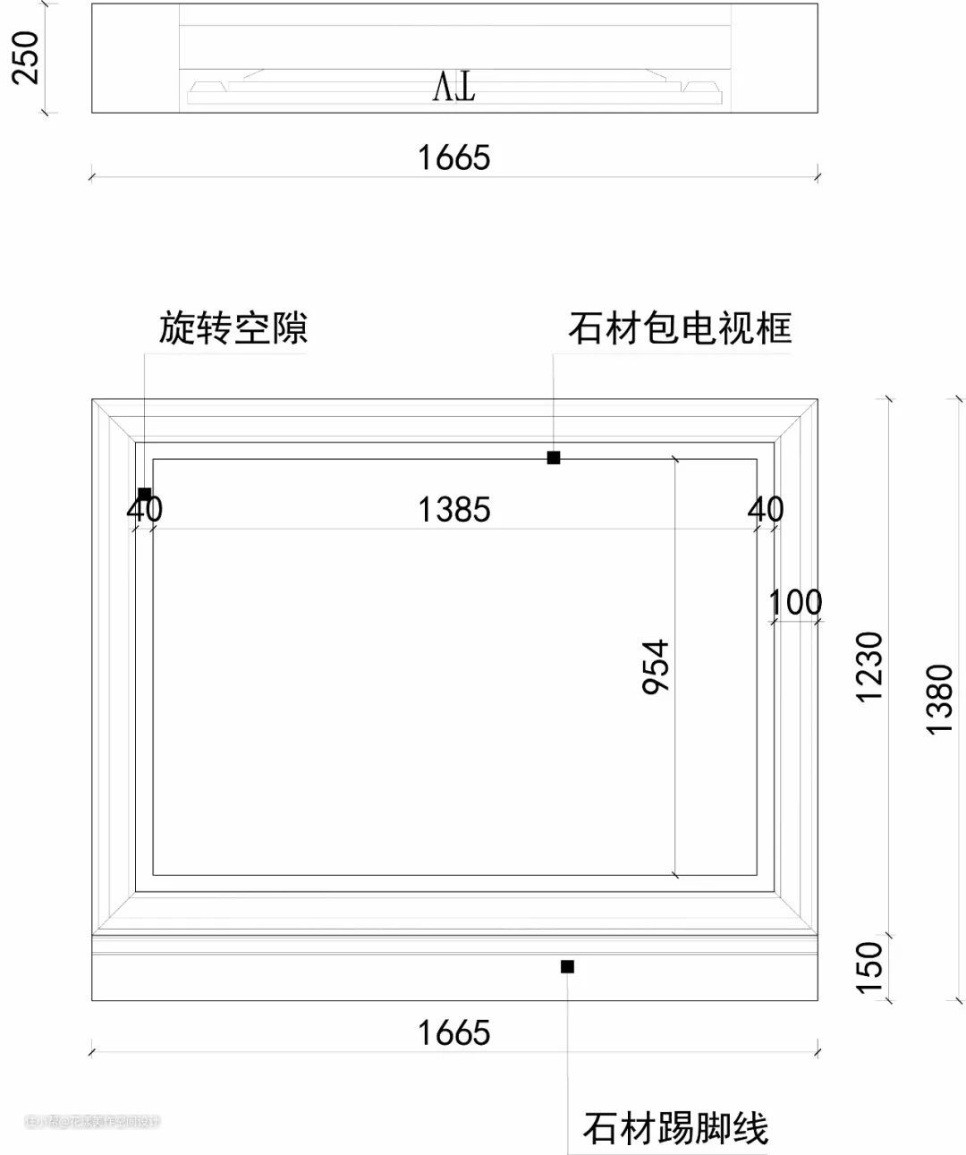 ▼在造型与功能上综合考虑,我们将电视机设置在客餐厅之间,定制了旋转框架,利用旋转轴承,可实现360°旋转,同时满足两个空间的使用。