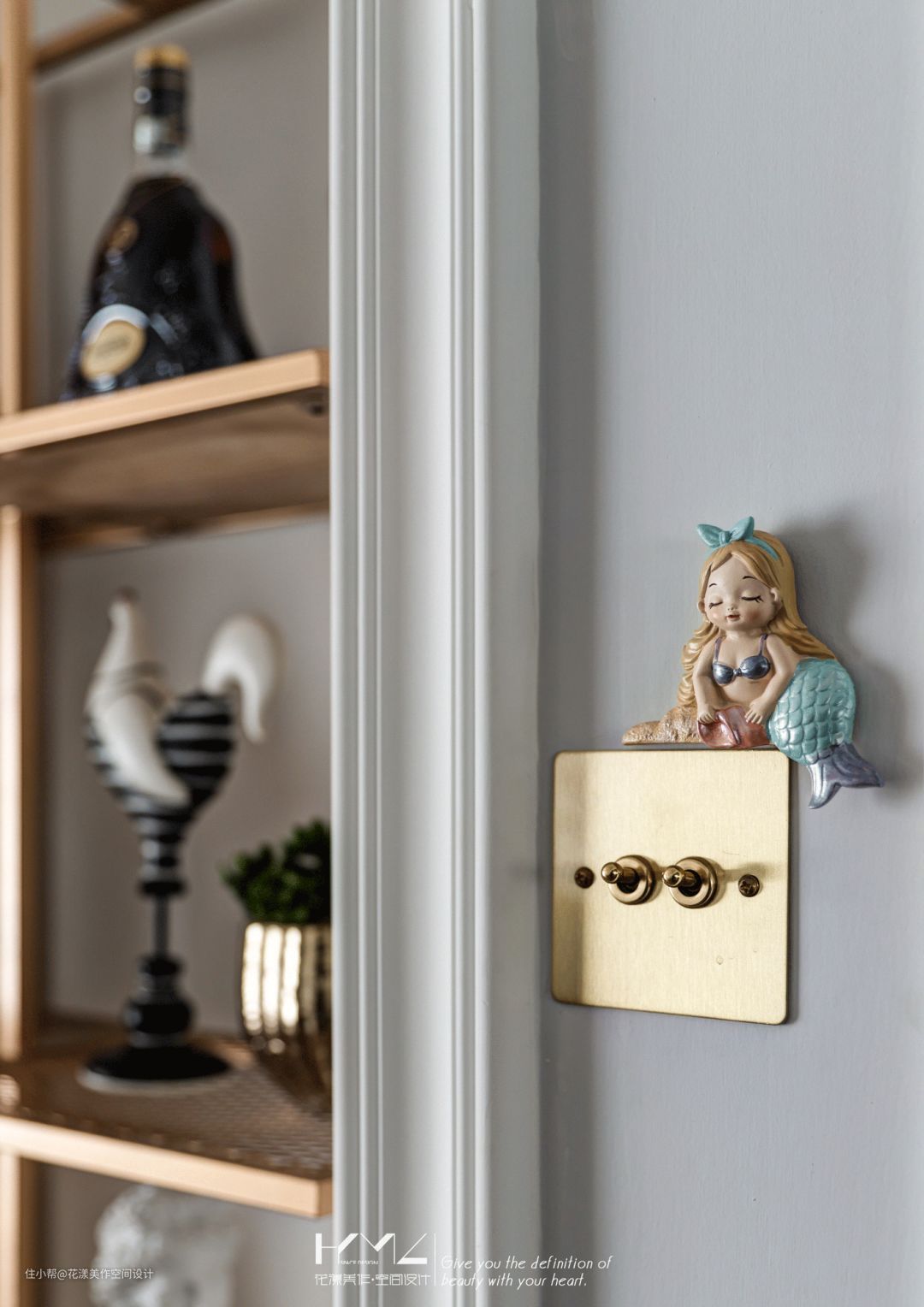 ▼黄铜的开关面板上是我们业主自己购买的美人鱼装饰,每个造型都不一样,安静的呆在那里,就像家里多了几个可爱的小精灵,生动又美丽。
