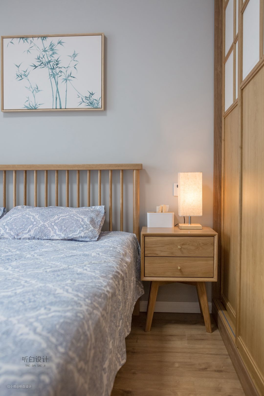 因为户型面积77,整体的空间比较小,选择做日式的设计,是因为觉得适合,叔叔阿姨也喜欢。
