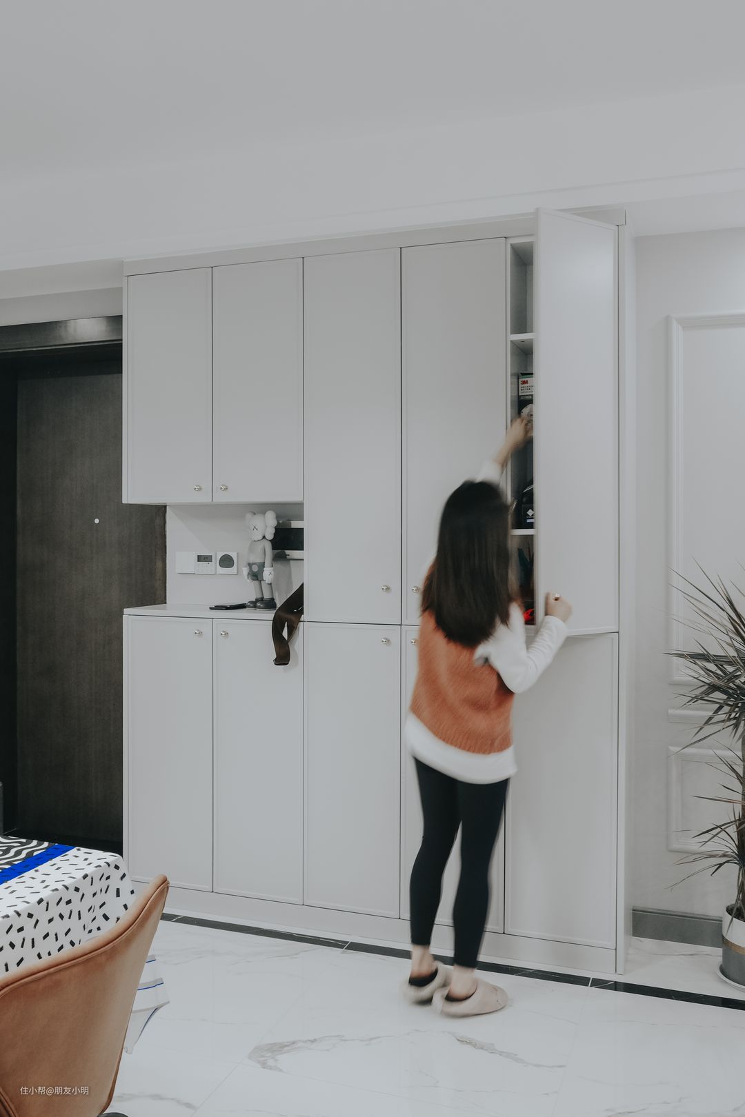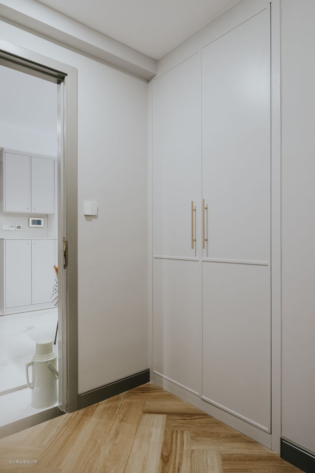 - 入户玄关一排鞋柜和过道斗柜,美观与实用并存