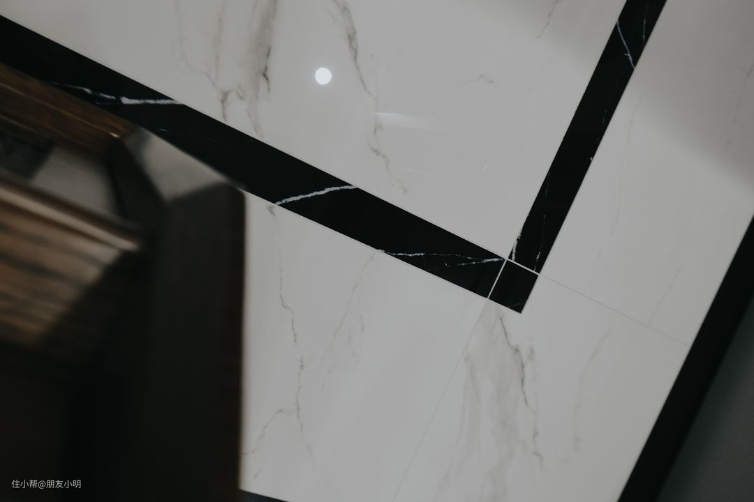 客厅瓷砖设计波导线,黑白色融入地面,线条增加层次感