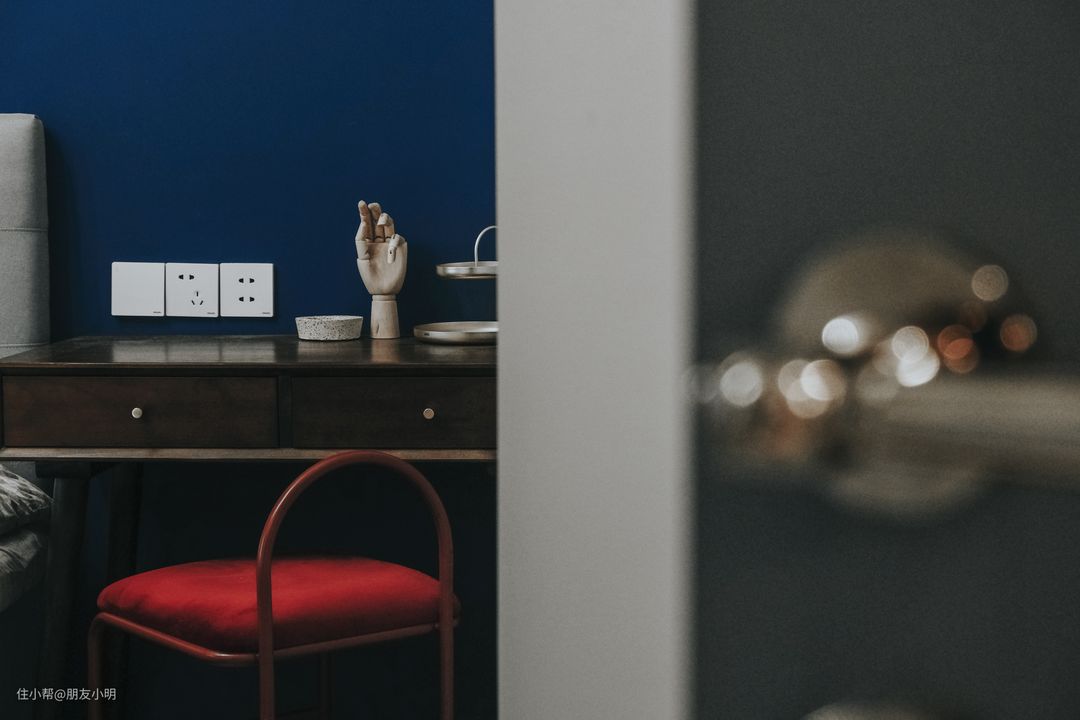 卧室蓝色墙面分色,增加视觉多样性,让空间暖起来