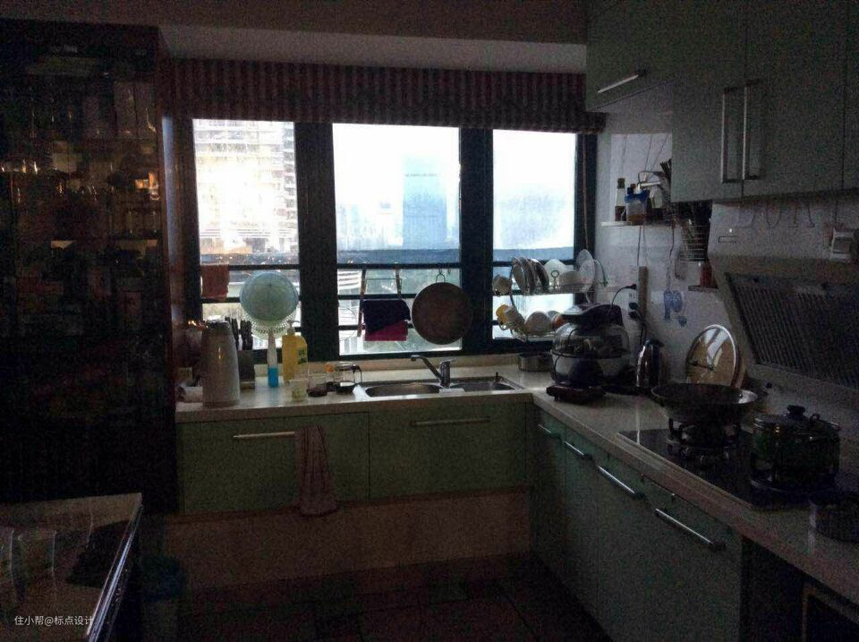 装修前厨房光线较暗,收纳不够,东西堆的有点凌乱。