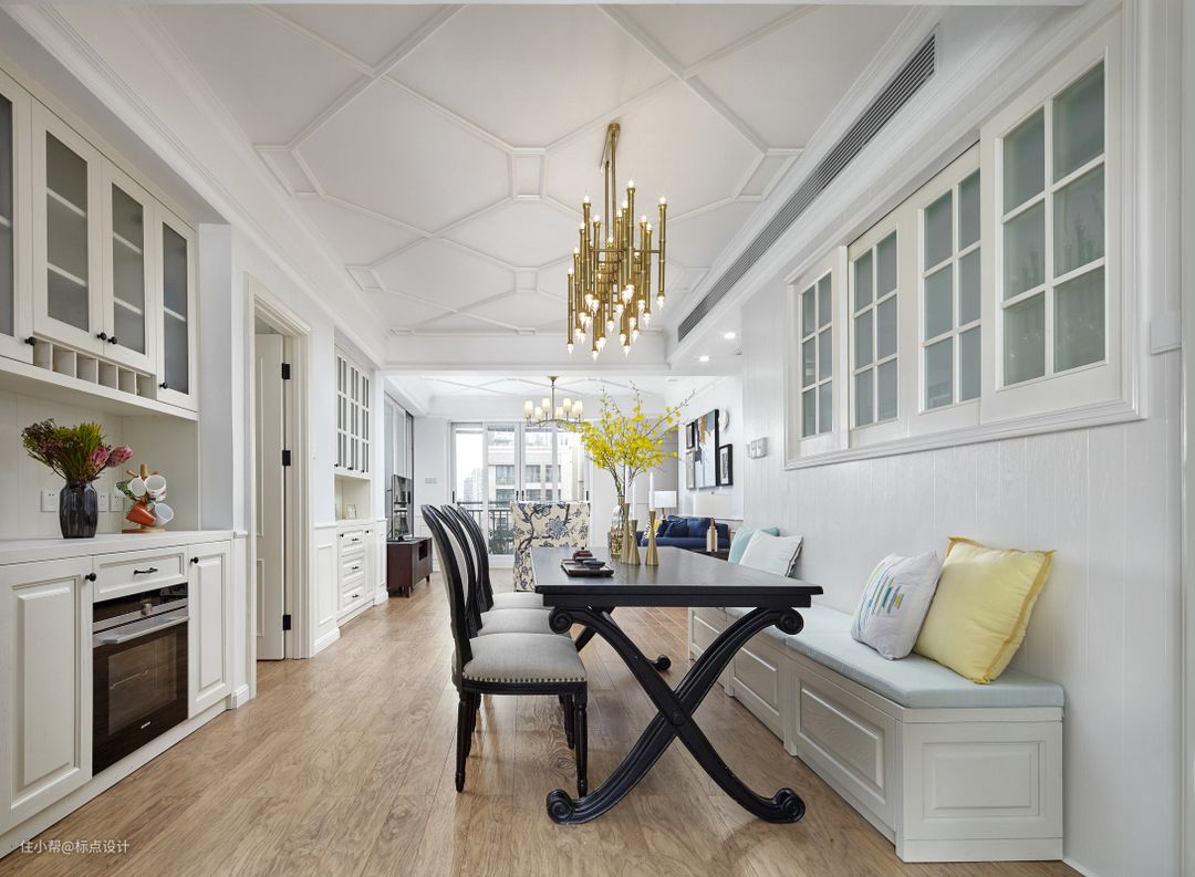 设计师在纯白的基础色调上,在丰富与克制、秩序与丰盈之间找到平衡点,打造出简约却又不简单的现代美式风格。