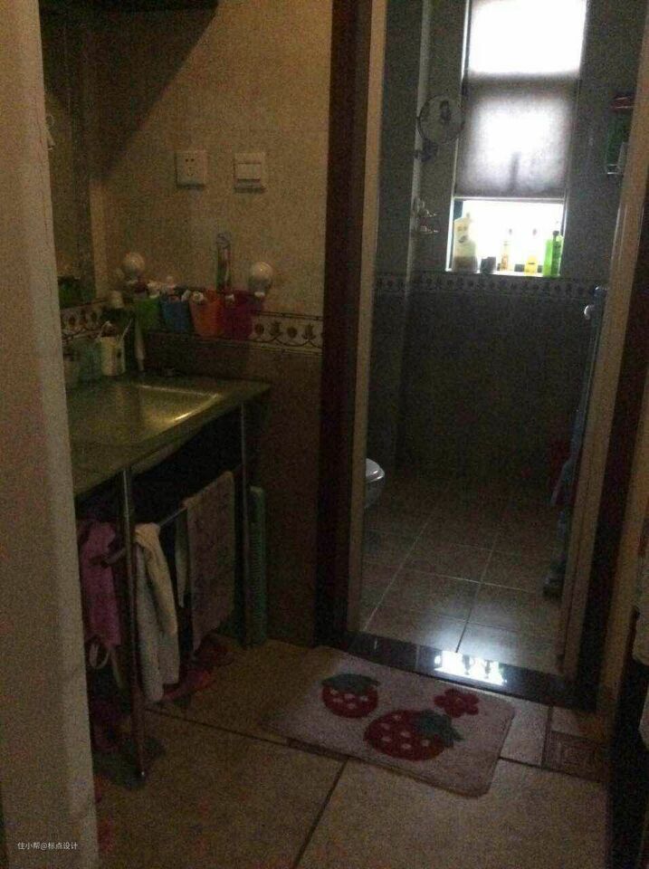 改造前卫生间昏暗凌乱。