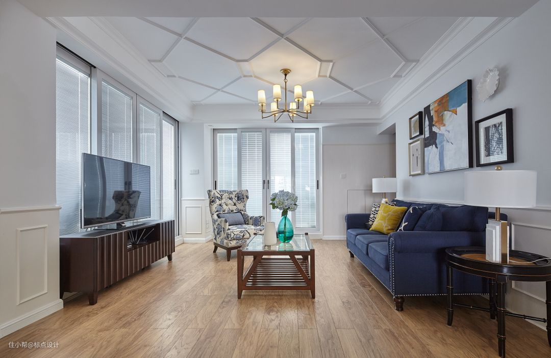 设计师在纯白的基础色调上,在丰富与克制、秩序与丰盈之间找到平衡点,打造出简约却又不简单的现代美式风格。