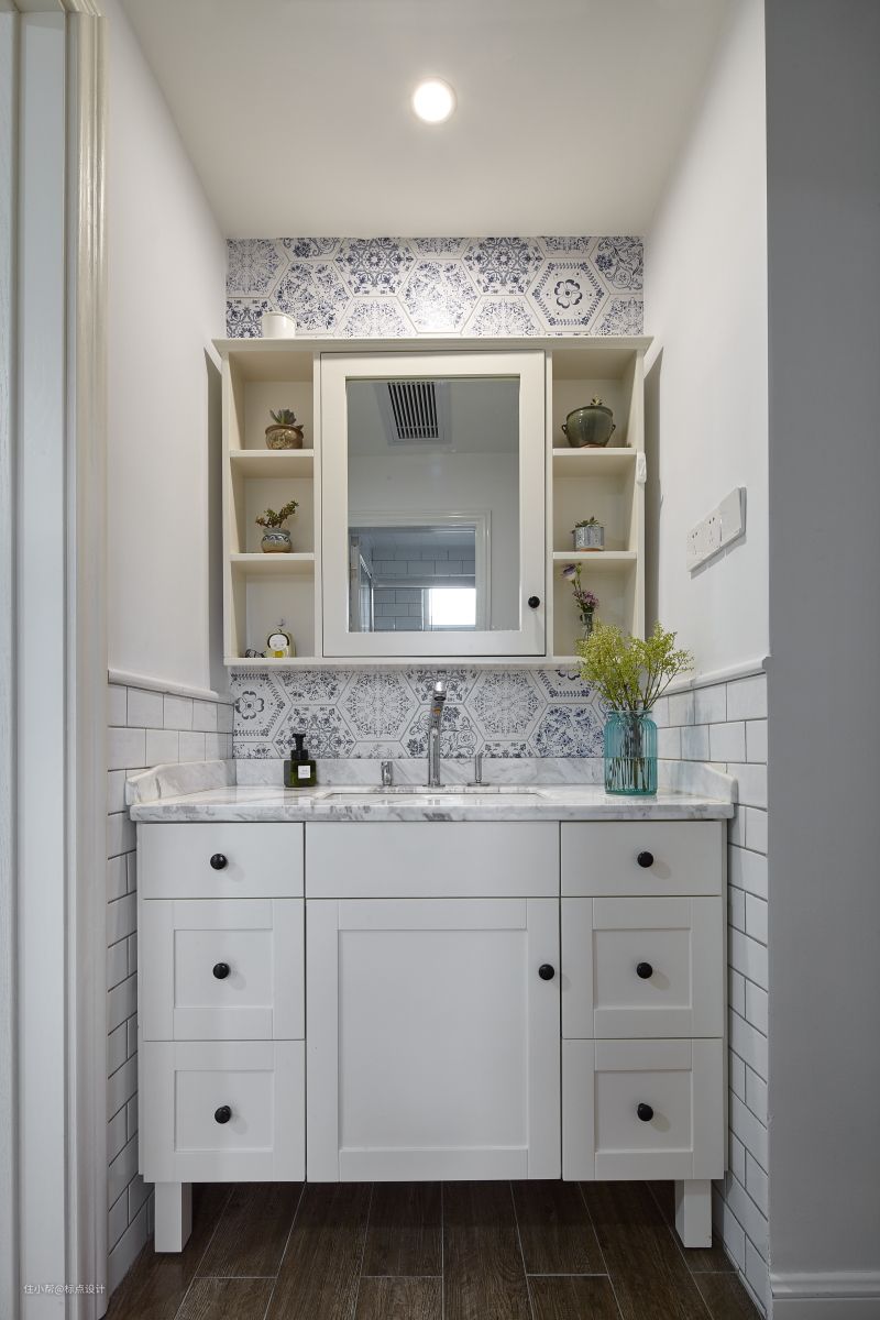 洗手台与淋浴区以玻璃门作为隔断,更方便日常生活中的清洁打理。整个空间用色去繁就简,让原本局促的小空间显得更为清爽敞亮。