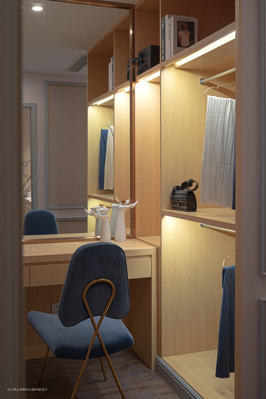 衣帽间的设计特别人性和多样,不同的布局满足业主不同的收纳需求。